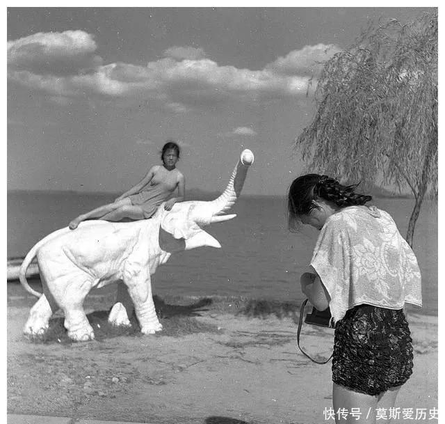 像片中是又名女子在调试相机准备摆好姿势的另又名女子像片。岸边的柳树,太空中的白云,湛蓝的海面,再配上躺在大象背上的女东谈主。其实这如故是很好意思的一幅画面了。