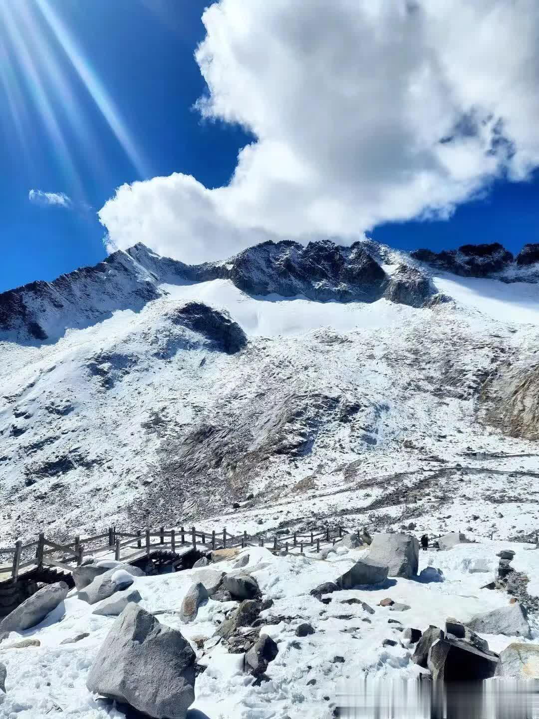 达古冰川在黑水县境内,具体在芦花镇马桥。冰川的巍峨与湖泊的如镜酿成明显对比,难以用超凡脱俗的词语来形色这奥密的冰雪寰宇。这里不仅有蓝色的冰雪飞瀑,还有丰富的当然景不雅,带上雪球夹,省心冲。