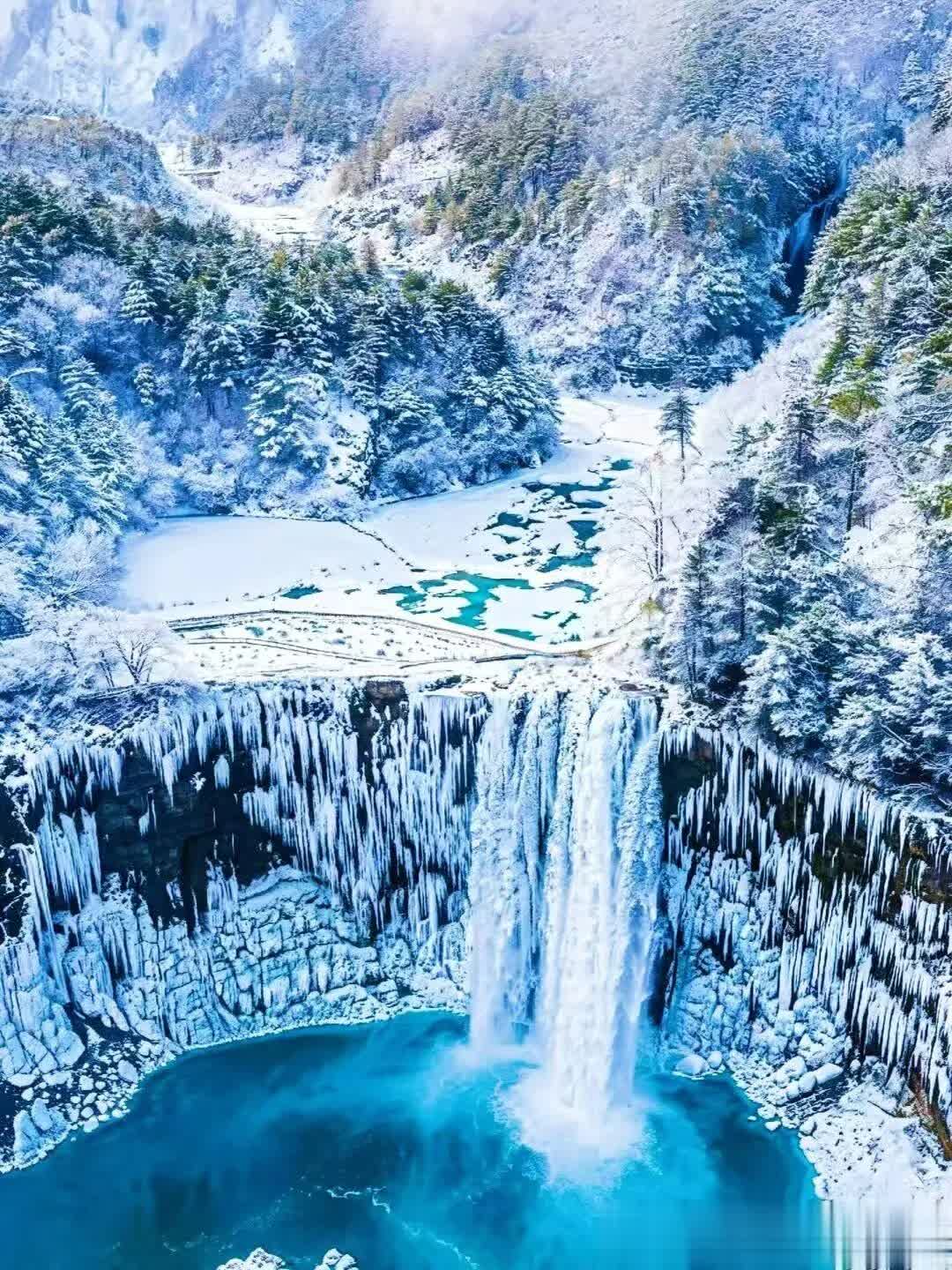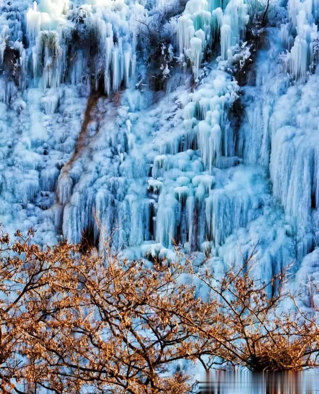 雪景+大好天+冰瀑布,运说念好还有生僻的蓝冰。