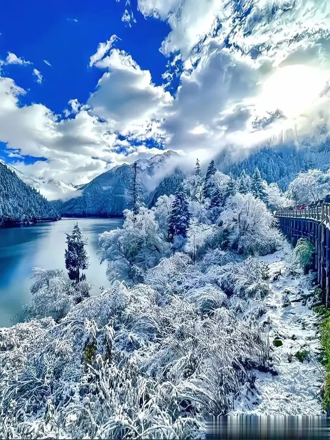 长海动作九寨沟蕞长的海子,长达4公里多,长海的湖水呈墨蓝色,给东说念主一种高深而秘籍的嗅觉。投入冬季,湖面初始结冰,四周的雪景更是增添了无尽的素丽,仿佛投入了一个冰雪琉璃的寰宇。