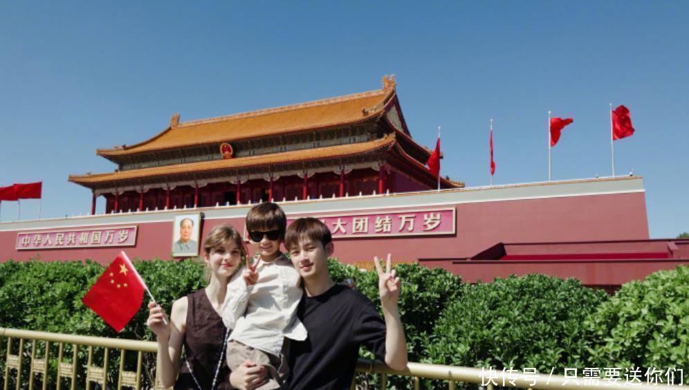 从董力晒出的相片中可以看到,拍摄的配景恰是天安门城楼前边,第一张图中,董力抱着他的混血女儿,阁下站着他的夫人。