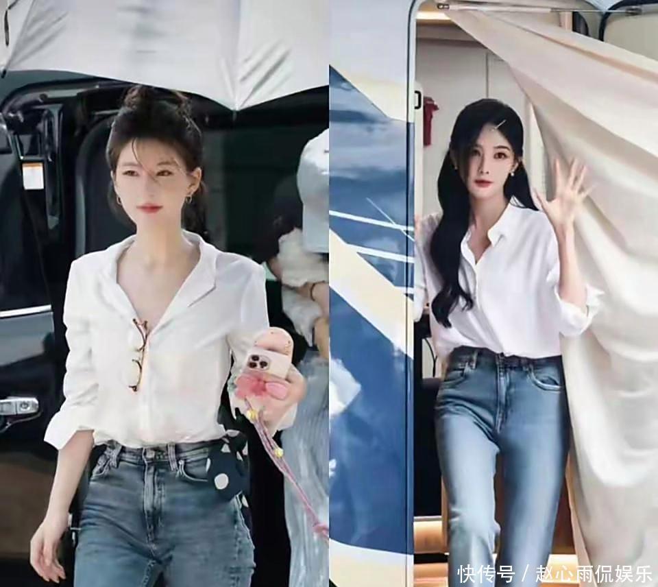 我有益去看了所谓的“抄袭图”,差点没乐出来,白衬衣搭牛仔裤,这不是咱大街上应答一合手一大把的搭配吗?何如到这儿就成赵露念念的“独门专属”了?