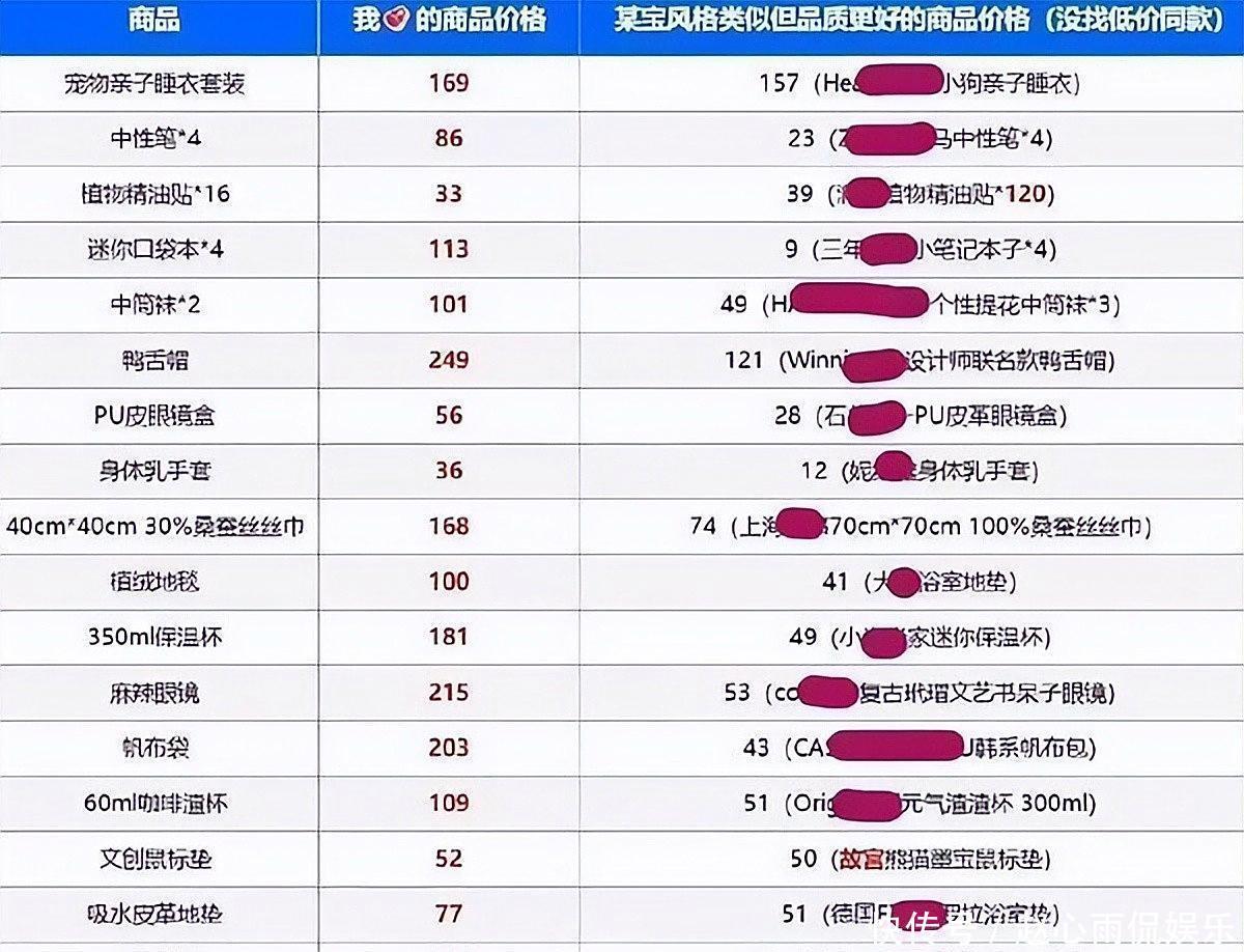 有谨防的网友就作念出了对比,她带的货价钱比淘宝同款跳跃好几倍,起步价比欧阳娜娜卖的还狠。