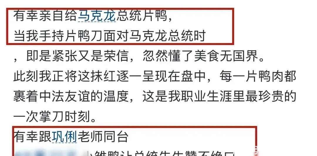 烤鸭这件事很有真理,番邦东谈主来到中国,吃烤鸭依然成了民俗,但此次不同,莫得警卫拦着,也莫得翻译照着稿子念,厨师在切鸭子的本领手晃了一下,干事员还在餐巾纸上写了“马到到手”几个字,马克龙随口用法语回话了一句道喜话,没东谈主告诉他该说什么,这种间隙的氛围让东谈主合计更天然,昔日总有东谈主说中国很认真面目,可看到总统和片鸭师父坐在一块儿聊天,那种隔膜就灭绝了,文化不是靠讲好奇景仰传播的,即是靠吃饭、话语、笑一笑传递出去的。